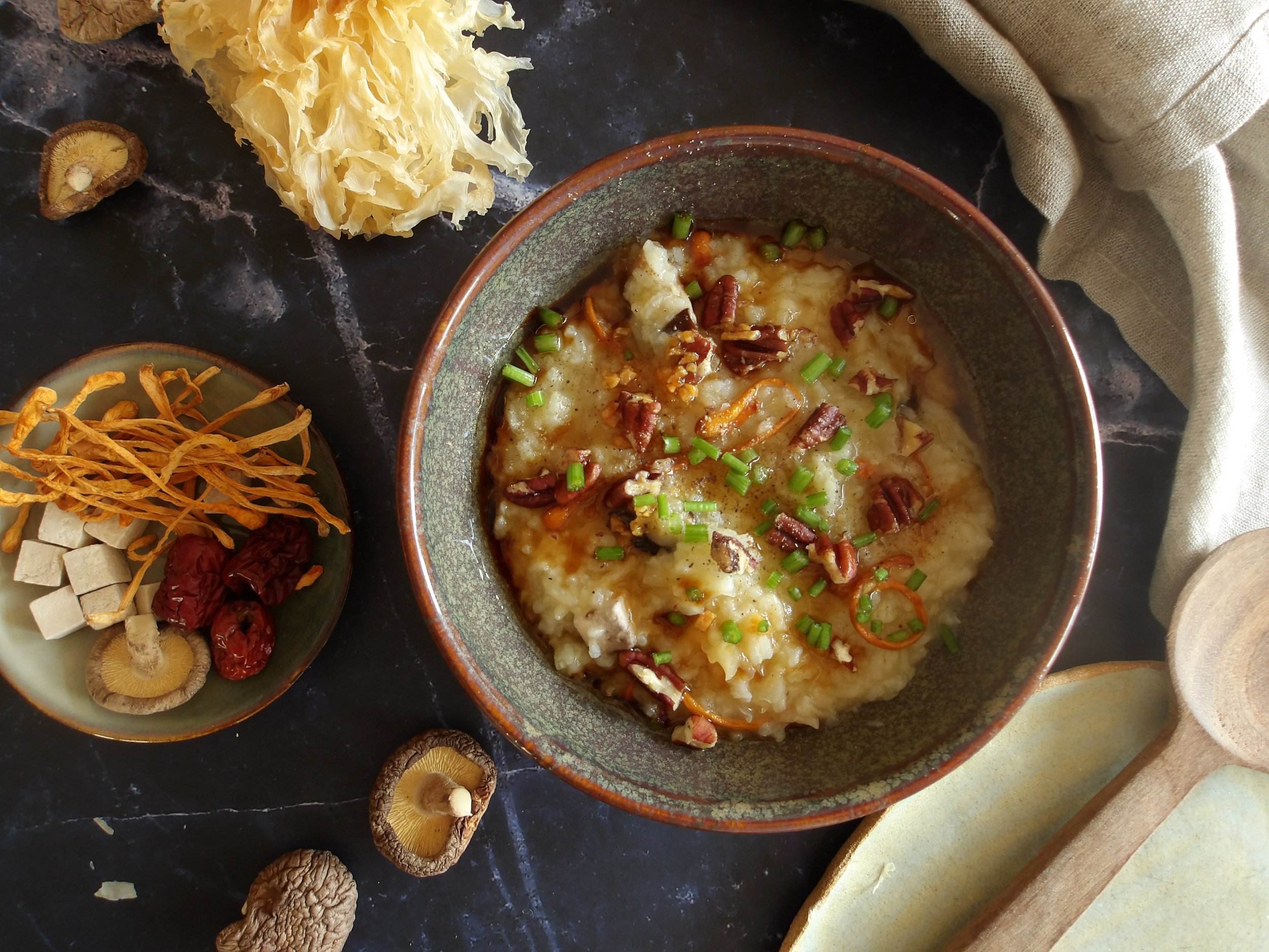 Ce congee est idéal à l’automne, quand l’énergie du Yin croît et que la sécheresse affecte les Poumons. Il soutient la Rate, harmonise le Qi, et nourrit le Yin tout en renforçant le Wei Qi.